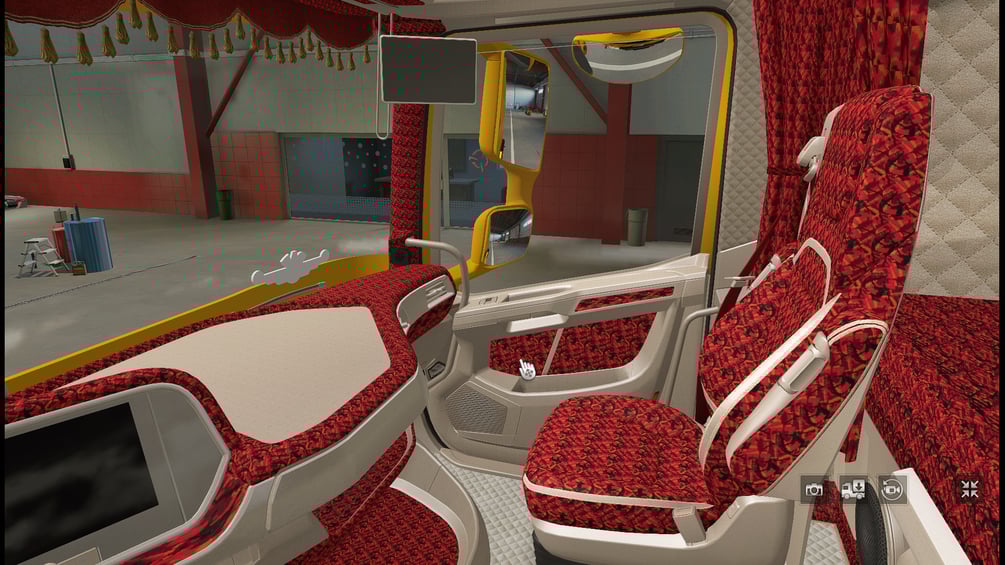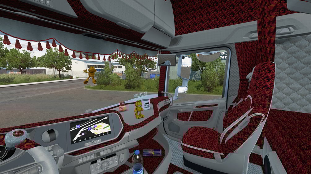ETS2 - TM Interior for DAF 2021 XF, XG, XG+ DANISH PLUCHE PLUSHE RED CREAM WHITE INTERIOR TEXTURE