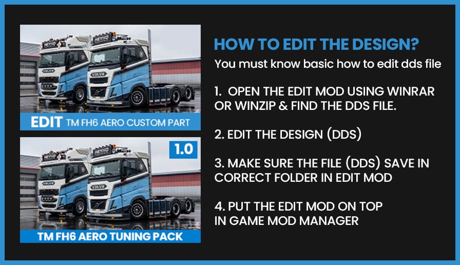 - Make sure you have basic skill in designing or editing dds file You can edit using paint.net
