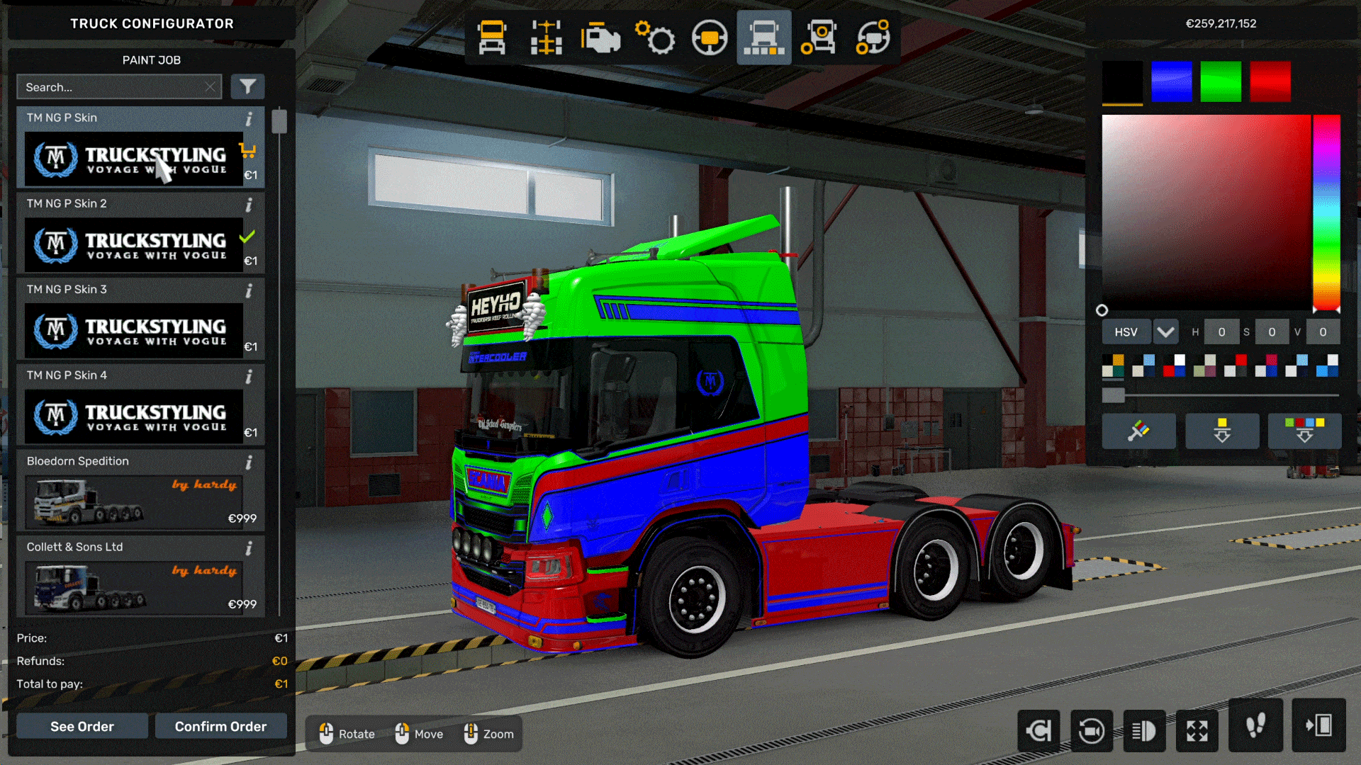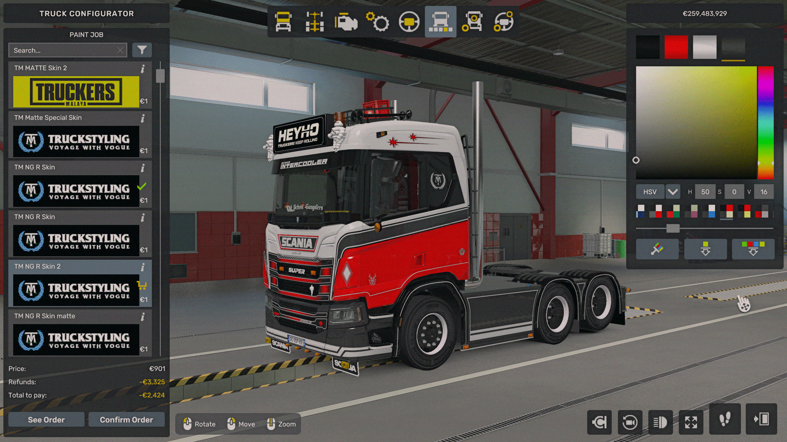 This mod is available in a PAID version, which includes the complete SCANIA PGRS Truck & Trailer paintjob/multicolor skin pack.