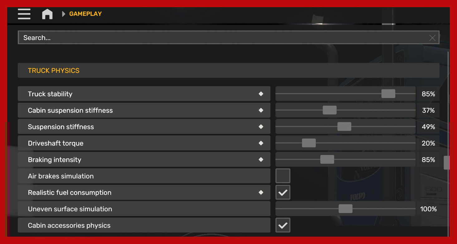 Improved the truck physics in Euro Truck Simulator 2 (ETS2) and maybe suit for American Truck Simulator (ATS) too, to make driving feel more realistic and immersive. I haven’t tested it extensively on ATS yet, but you’re welcome to give it a try!