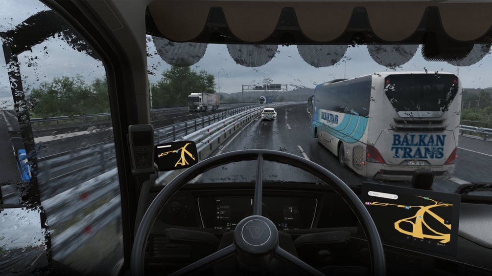 Ultra-Realistic Raindrops: Raindrops on the windshield are now finer, denser, and behave naturally. They "stick" at low speeds and slide dynamically as you accelerate, simulating real-world physics.