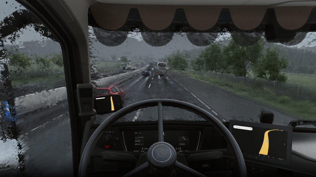 Ultra-Realistic Raindrops: Raindrops on the windshield are now finer, denser, and behave naturally. They "stick" at low speeds and slide dynamically as you accelerate, simulating real-world physics.