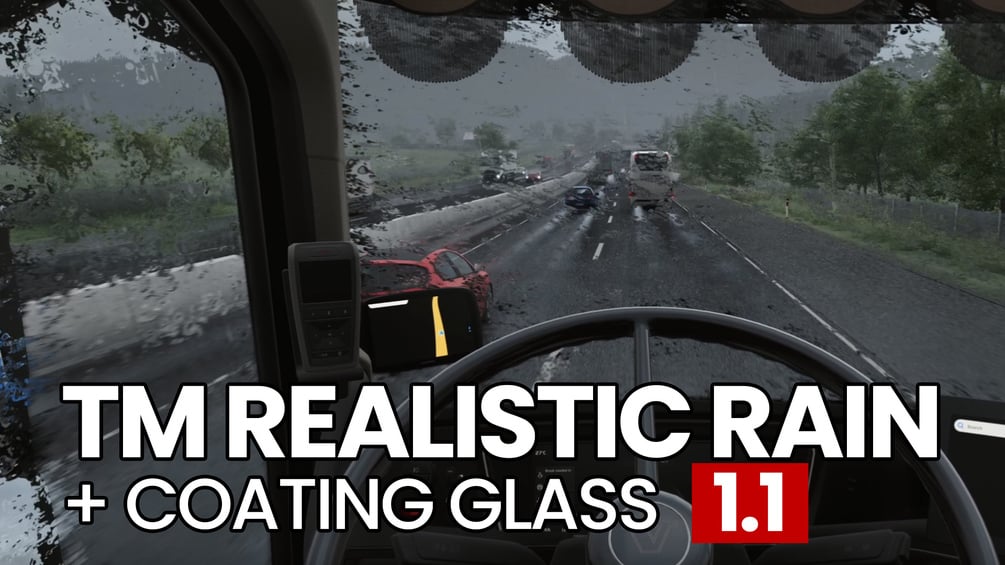 Transform your driving experience with TM Realistic Rain with Coating Glass. This mod completely reworks the rain system in Euro Truck Simulator 2 to deliver the most immersive and realistic wet weather simulation possible.